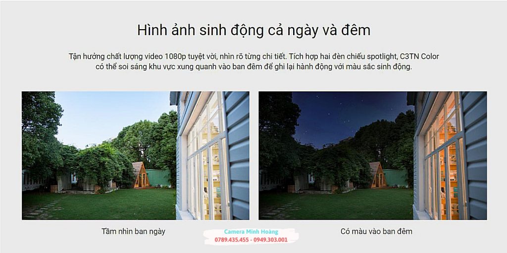 Tận hưởng chất lượng video 1080p tuyệt vời, nhìn rõ từng chi tiết. Tích hợp hai đèn chiếu spotlight, C3TN Color có thể soi sáng khu vực xung quanh vào ban đêm để ghi lại hành động với màu sắc sinh động.